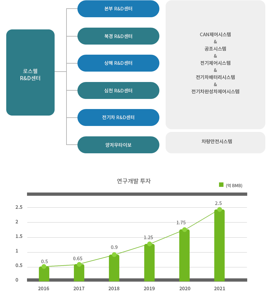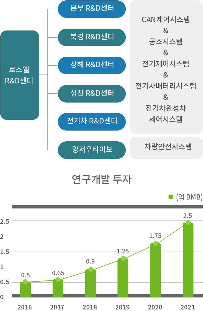 로스웰은 자동차 전장부품 기업으로서 핵심기술에 대한 연구개발과 혁신, 그리고 높은 품질을 확보하여 시장을 개척하고 성장성을 강화하고 있습니다.