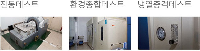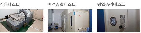 PID(Processor Identifier : 제어기 공정 인식) 기법을 이용한 SSR 방식으로 항온•항습 조절 시스템을 적용하고 있습니다. 고저온열 실험의 온도 범위는 +60°C~+150°C / -40°C~0)°C이며, 기계 진동 실험 범위는 최대 51mm p-p, 최대 가속도 100G, 주파수 5~2500Hz입니다. 충격 실험은 가속도 100m/s2, 주파수 1000±10회, Pulse 시간은 16분입니다.