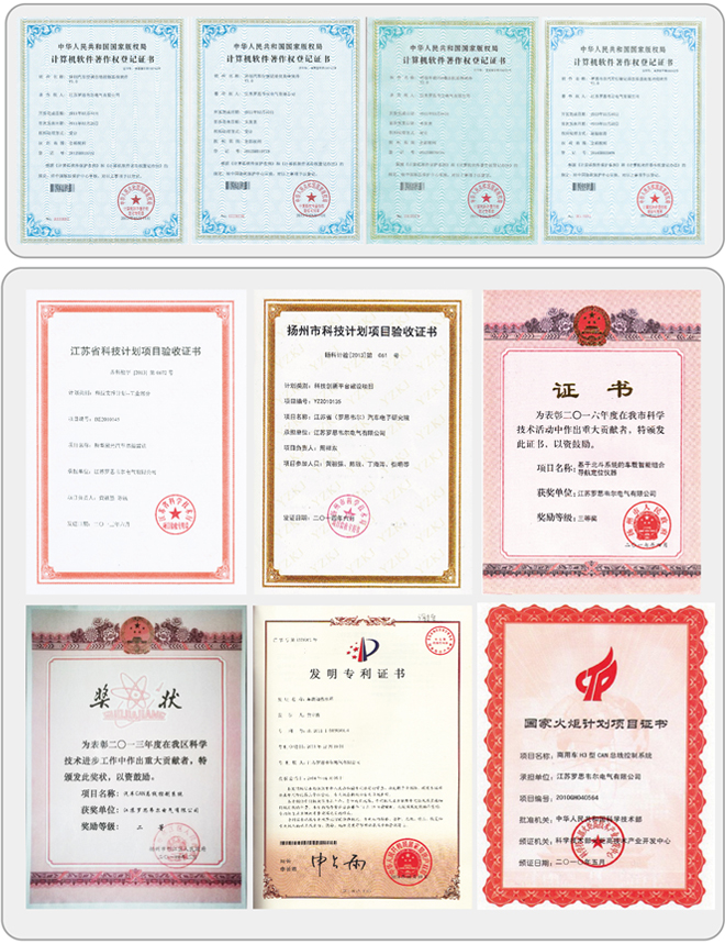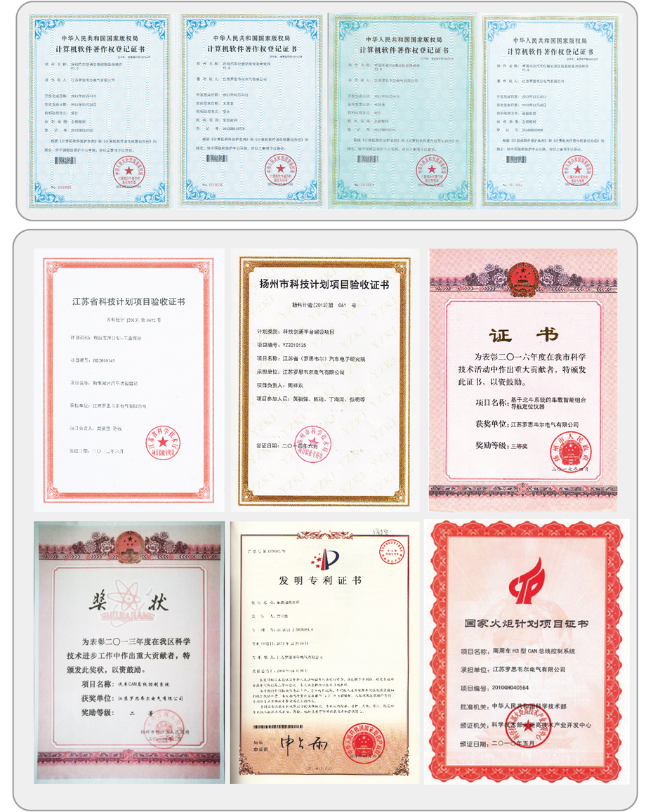 로스웰은 최근 수년간 중국 횃불 계획(China Torch Project), 장쑤성 기술지원프로그램, 장쑤성 산업혁신 및 특별기금 프로그램, 장쑤성 산업정보융합 특별지원 프로그램 등을 수행하였으며, 이 과정에서 우수한 성과를 통해 다수의 독자적인 지적재삭권을 확보할 수 있었습니다. 현재 10개의 발명 특허, 35개의 모델 특허, 40개의 소프트웨어 저작권을 보유하고 있습니다. 그리고 ‘장쑤성 하이테크 제품’에 선정된 18개의 제품들 모두 ‘장쑤성 유명브랜드’가 되었습니다. 특히 로스웰의 ‘자동차 CAN bus 제어시스템’은 ‘2014년 양저우시 과학기술 진흥상’을 수상하였습니다.